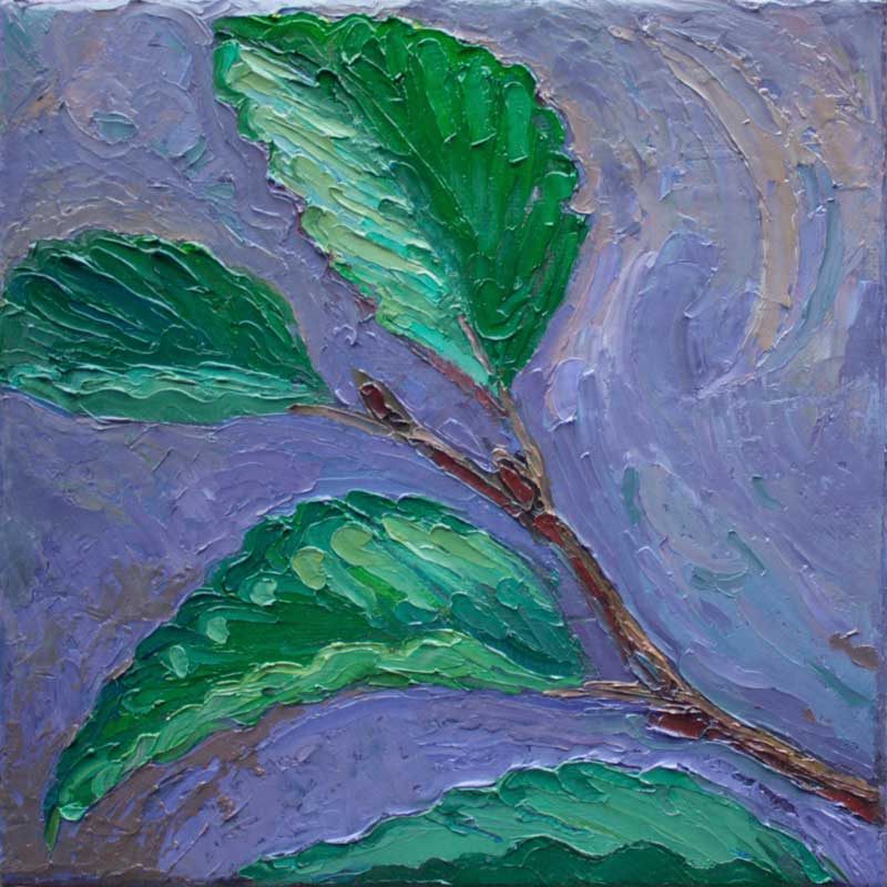 In my Carry the Earth project, I convey my respect for trees, using my artistic talents to express a commitment to the natural environment. With the eye of an artist and the ecological focus of a landscape architect, I am producing a suite of paintings that looks closely at five tree species native to Southern California, where I live—coast live oak, western sycamore, California laurel, white alder, and Santa Cruz Island ironwood. I explore each species with three paintings—whole tree/grouping; trunk/bark; and twig/leaf. This telescoping of scale mimics how we might appreciate the environment, from big pattern picture to small intricate detail.