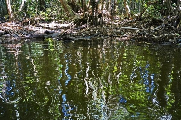 The growing pressures of development have resulted in gold mining and logging in this area. Mining gold requires that the land is stripped of vegetation and soil is sifted to collect gold dust. Mercury is added to the sifted sand causing the gold dust particles to adhere to it. Then the mercury is burned off to extract the gold. This type of mining causes mercury pollution in the Amazon’s rivers killing fish and traveling up the food chain. Mercury becomes permanently embedded in the land and water of the pristine Amazon environment.