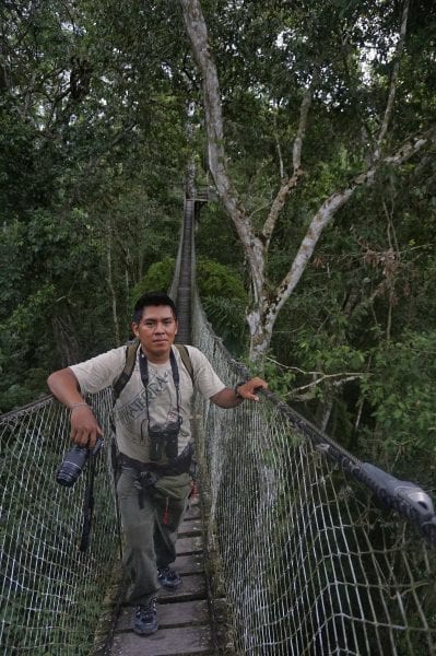 David illustrates in his own life that we all make choices to survive. He did not have an easy time getting to where he is now. He was born as the youngest of eleven children with six older sisters and four older brothers. His education from grades 1-6 was in a single room schoolhouse with one teacher for all of the ages of students. At about age 11 his father had enough resources to allow him to go to the local city Puerto Maldonado to continue school accompanied by one older sister but by the time he was age 14-15, there was a need for him to work to supplement his father’s support. Jobs in the area consisted of gold mining and logging and he did this type of work to help pay to stay in school. He soon learned about the environmental problems that this type of work created and wanted to do something else. By age 17, his father offered him the opportunity to farm on land that the government had given him, but David chose to go the local university instead. At this point, he had to pay his own way by studying half a day and working as a taxi driver using a motorcycle on the other half of the day. He managed successfully to complete his university degree and began working in tourism locally, first in the staff of a small hotel, and then as a tour guide. Finally, he got his license as a tour guide and this year started working at Inkaterra Reserva Amazonica, a very reputable Eco-lodge set up to lodge and educate visitors and do nature research. Run as a carbon neutral facility that houses tourists, it supports the local economy by providing jobs for indigenous people.